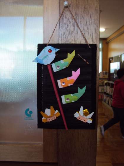 本日も図書ボランティアありがとうございました。折り紙講師に頂いた、こいのぼりや兜の飾り付けもしていただき、図書室が賑やかになりました。