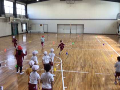 ジグザグリレーをしました。 行きはジグザグ回って、帰りは直線です。