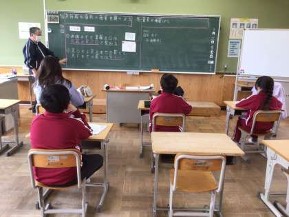 4月25日 算数 国際6年生 公開日 2025/04/25 更新日 2025/04/25 校長室から あれ?黒板が一昨日と全く同じ? 先生が復習のために消さずに残しておいてくれました。 それを見ながら今日の学習につなげていきました。
