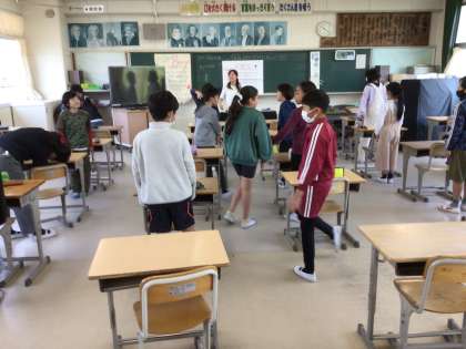 4月30日 音楽 5年生 公開日 2025/04/30 更新日 2025/04/30 校長室から ビリーブを歌うきれいな声が聞こえてきました。 音楽室へ入ると、 「校長先生が来てくれたから、ビリーブくらいきれいな声であいさつしましょう」 あれ?もう終わり?