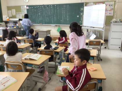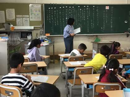 はたらく人に話を聞こう 学校の中で働いている人の名前が黒板にずらり。 もちろん私の名前もありましたよ。