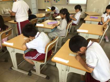 1年生は今日から自分で連絡帳を書きます。
