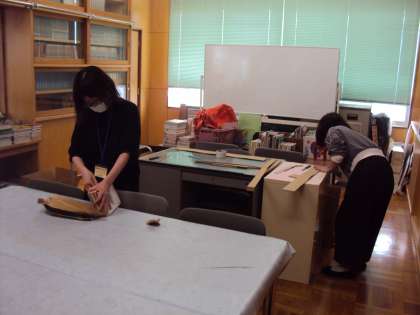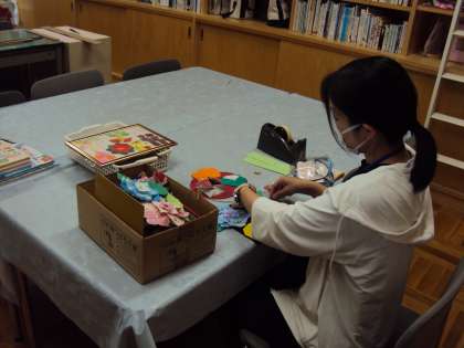 季節の飾りを交換したり、廃棄図書の処理を行っていただきました。