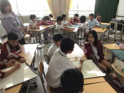 グループで協力して、謎解きです。 はじめは簡単だったのかな? みんなできていました。