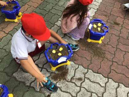 5月19日 生活科 1年生 その2 公開日 2025/05/19 更新日 2025/05/19 校長室から 植木鉢に土を入れ終わり、これから種をまきます。 「校長先生、見て!顔みたい」 種を3つまきます。 穴をあけたところを見ると確かに顔😗みたいでした。