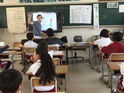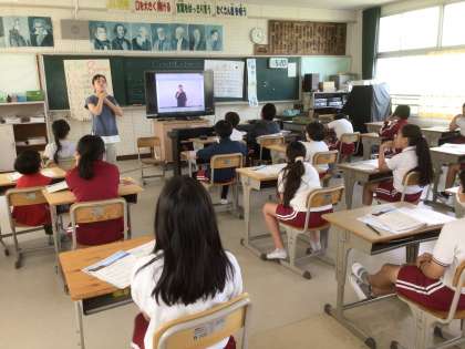 5月20日 音楽 5年生 公開日 2025/05/20 更新日 2025/05/20 校長室から いつでもあの海は 今まで元気な声で歌っていたけれど、これからは美しい声で歌えるように 声の出し方を意識しました。 動画を見て、姿勢やのどの開き方の確認をしました。