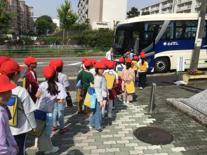3年生は、自然観察の森へ出かけます。 「行ってきます」 元気な声で言えました。