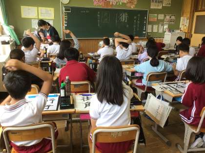 「街角」の練習です。 今日は「街」を書きました。 書けたら先生に見てもらいます。