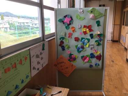見にいくと、折り紙教室は終わっていましたが、素敵な作品が掲示してありました。