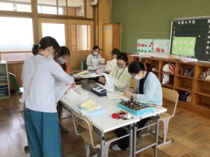 奥の部屋では、ボランティアさんが足ふきマットを作ってくださっていました。