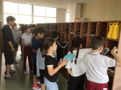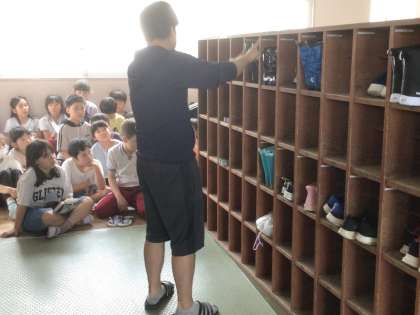 6月3日 昇降口へ 3年生 公開日 2025/06/03 更新日 2025/06/03 校長室から 5時間目の終わりがけ、3年生が昇降口に移動していくのに出会いました。 ついて行ってみると、明日からプールで使うビーチサンダルの置き場所を確認してそこへ入れていました。