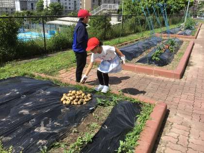 6月4日 じゃがいもの収穫 7・9くみ 公開日 2025/06/04 更新日 2025/06/04 校長室から 畑で何やら掘っている様子。 「何をしているの?」と聞くと 「おいもを掘っているの」と返事がありました。 「校長先生、見て、こんなにとれたよ」 うれしそうに教えてくれました。