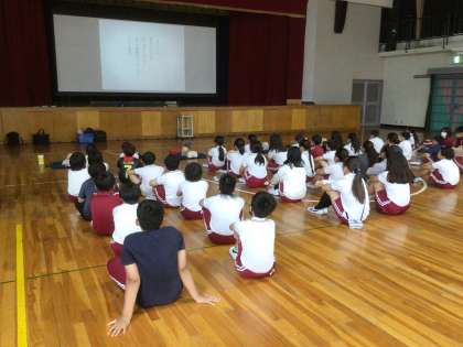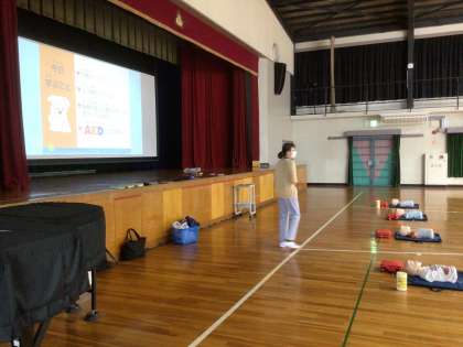 6月4日 応急手当て講習 5年生 公開日 2025/06/04 更新日 2025/06/04 校長室から 身近な人の心臓が突然止まってしまったとき、 これを知っていれば、助けることができたかもしれない。 今日は、講師の方をお招きして、応急手当て講習会を開きました。 胸骨圧迫やAEDの使い方も学びます。