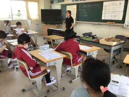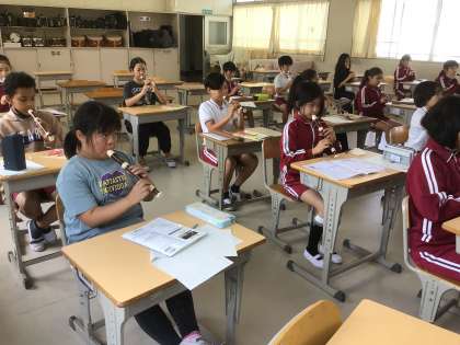 今日はリコーダーのテストです。 「小さな約束」を演奏します。 テストの前に練習しました。