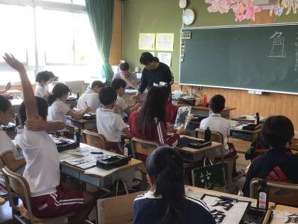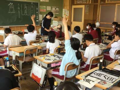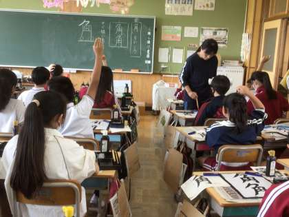「街角」の角の練習です。 書けたら先生に見てもらいます。