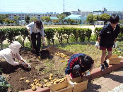 急遽、環境整備の方が育てているじゃがいも堀りもしていただき、暑い中、どうもありがとうございました。(途中、6年生2名もお手伝いに来ました)