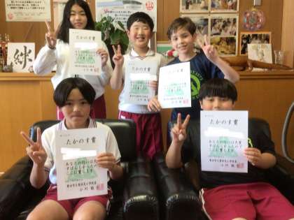 6月5日 たかのす賞 5年生 公開日 2025/06/05 更新日 2025/06/05 校長室から 掃除の時間、黙々と自分の分担箇所をきれいにした子 日本語が分からなくて困っている子に、そっと教えてあげた子 「失礼します」がきちんと言えるなど、礼儀正しい態度の子 友達や学校のためにがんばっている子がたくさんいます。