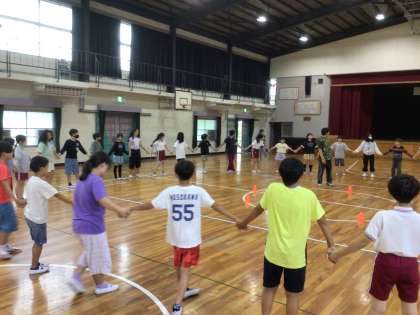 6月11日 キャンプに向けて 5年生 公開日 2025/06/11 更新日 2025/06/11 校長室から 体育館でマイムマイムの練習をすると言う情報を得たので、見にいきました。 先生から踊り方の説明があり、みんなでやってみました。 次に輪になって、曲に合わせて踊り(?)ました。