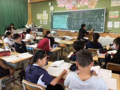 6月12日 算数 6年生 公開日 2025/06/12 更新日 2025/06/12 校長室から わる数と商の大きさを比べよう 授業の後半にのぞきました。 黒板いっぱいに学習したあとが・・・。 やっぱり6年生はすごいね。