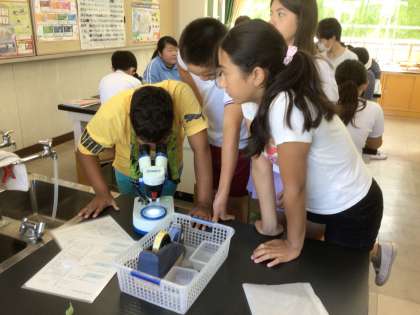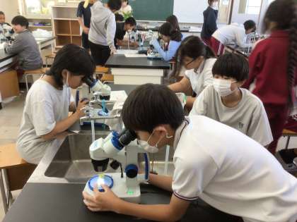 6月18日 理科 6年生 公開日 2025/06/18 更新日 2025/06/18 校長室から 水は葉のどこから出ていくのだろう 植物の葉の気孔を観察しました。 プレパラートを作って、顕微鏡で見ました。