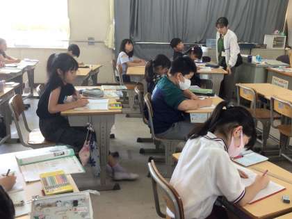 教室へ入ると、真剣に教科書の問題を解いていました。