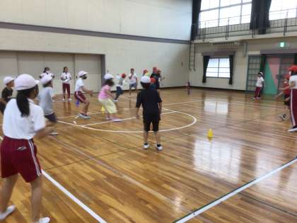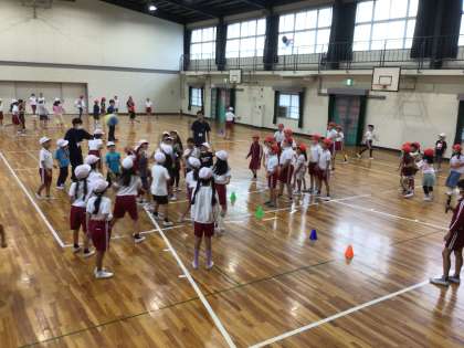 外遊びの代わりに、1年生・3年生・5年生が体育館でドッジボールをしました。