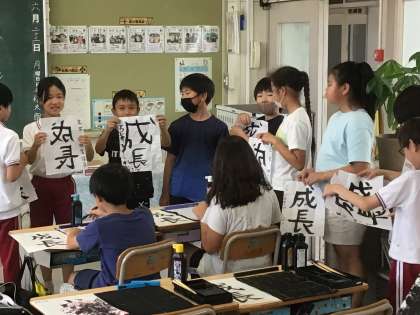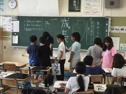 「成長」と書きました。 自信があるのか、 「校長先生、写真撮って」 と、声をかけてきた子もいます。