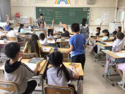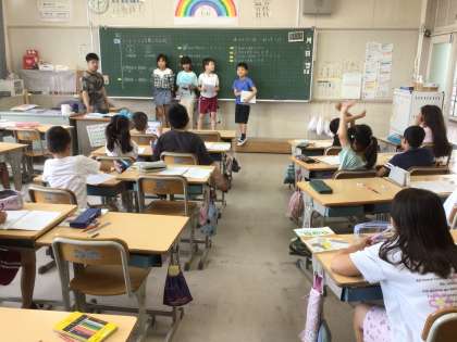 たしたらどんな数になるのかな? 黒板の計算問題を解きました。 全員「さんせーい」