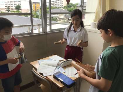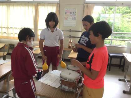 6月25日 音楽 5年生 公開日 2025/06/25 更新日 2025/06/25 校長室から オリジナルのアンサンブルを作ろう 打楽器を使って、グループごとにリズムを打っています。 いい感じのリズムが聞こえてきました👌