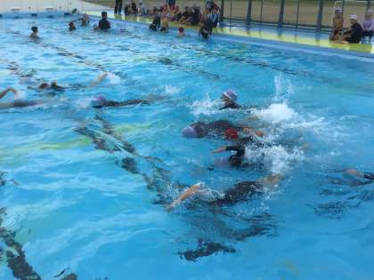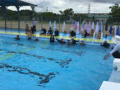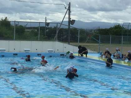 4年生は深い方のプールで泳ぎの練習をしました。 4年生になると、結構泳げるんだなあと思いました。