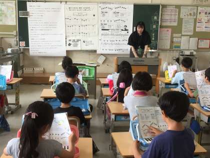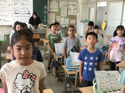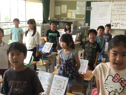 2年生のクラスに行くと、校歌の1番を元気いっぱい歌ってくれました。