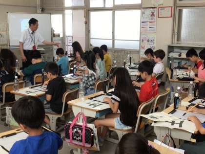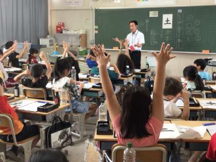 6月27日 書写 3年生 公開日 2025/06/27 更新日 2025/06/27 校長室から たて画に気をつけて書こう 今日は清書です。 「土」と書きます。 準備の段階で、すでに手が黒く汚れている人がいます。 うーん🧐