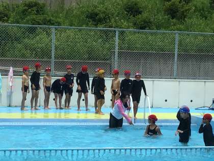 水に顔をつけて泳いでいる子もいます。 上手だね。