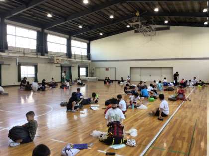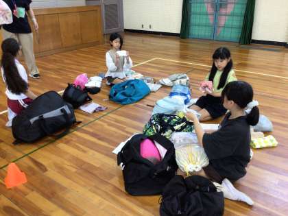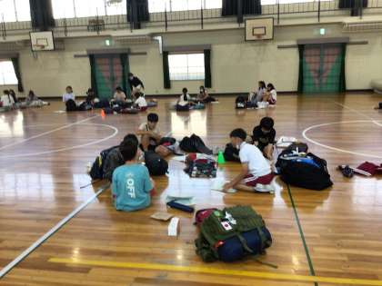 1時間目から、5年生は体育館に集まって荷物確認をしました。