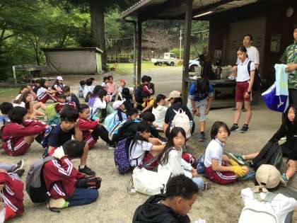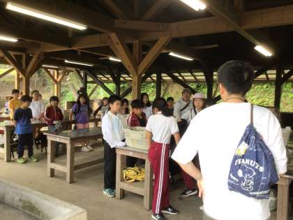 7月2日 野外学習 2日目 その1 公開日 2025/07/02 更新日 2025/07/02 学校行事 おはようございます。 起床の6時前から、歩き出す子もいました。 6時45分の集合時刻 遅れてくる子も何人かいました。 炊事棟へ移動し、カートインドッグを作ります。