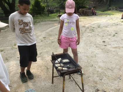 チーズとハム、レタスをパンで包んで、アルミホイル、新聞紙、牛乳パックに入れて火をつけます。
