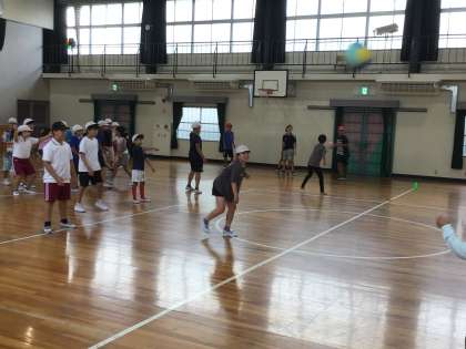 7月3日 ふれあいタイム 公開日 2025/07/03 更新日 2025/07/03 校長室から 今日も暑かったです。 湿度が高いので暑さ指数も高く、外遊びができません。 今日のふれあいタイムは、2・4・6年生がドッジボールをしました。 体育館のエアコンのおかげで、快適に遊べました。