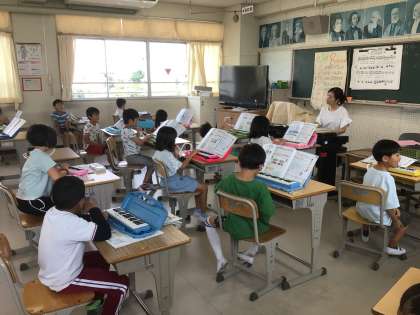 鍵盤ハーモニカで「ぷっかり くじら」を演奏しました。