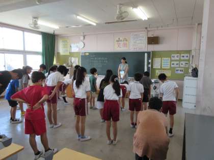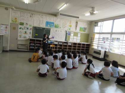 今朝も暑い中、読み語りの方に来ていただきました。子どもたちは前のめりになって集中してお話を聞いている様子も見られました。東保見小で26年間も読み語りをやってくださっている方もみえて頭が下がります。本当にありがとうございます。