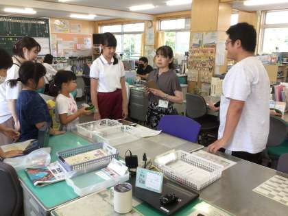 夏野菜がたくさん収穫できました。 職員室でお店を開きました。