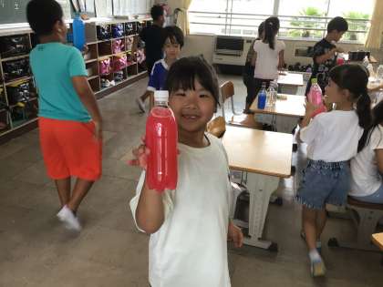 絵の具を使って色水遊びをしました。 大切に持ち歩いていました。