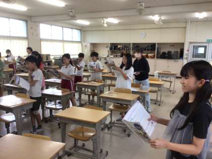 7月16日 音楽 5年生 公開日 2025/07/16 更新日 2025/07/16 校長室から リコーダー練習が終わり、次は歌の練習です。 楽しそうに歌うことができました。 「元気よくではなく、きれいな声で歌ってね」 と声をかけると、きれいに歌うことができました。