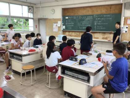 7月16日 家庭科 6年生 公開日 2025/07/16 更新日 2025/07/16 校長室から 赤白帽子を手洗いしよう すでに洗濯が終わっていました。 濡れた赤白帽子を見せてくれました。 「きれいになったね」