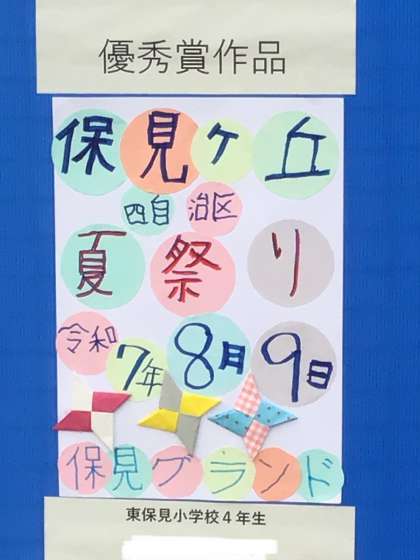 8月9日 保見ヶ丘夏祭り その2 公開日 2025/08/09 更新日 2025/08/09 校長室から 今年度は本校にもポスター募集の声がかかり、多くの子が応募しました。 その中で、優秀賞に輝いた作品がありました。 やぐらの上で区長さんから賞品をもらいました。