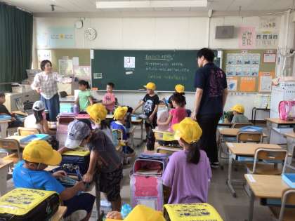 今日は夏休みの課題提出日。 久しぶりに友達や担任の先生に会えて、子どもたちはうれしそうでした。