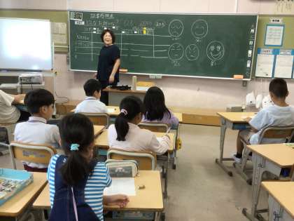 読書感想画を描こう 今日は、お話を読んでもらいました。 その後、どんなお話だったか、確認しました。