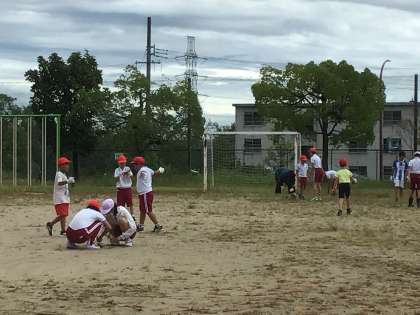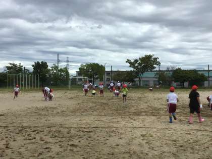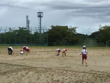雨が上がり、運動場の草がおもしろいくらい簡単に抜けます。