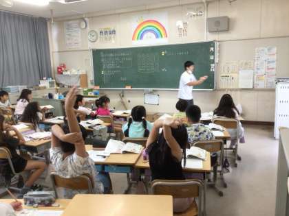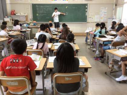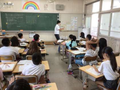 9月16日 算数 3年生 公開日 2025/09/16 更新日 2025/09/16 校長室から どんな計算になるのか考えよう 11➗2=5あまり1 あまりの1をどのように考えたらよいのかを先生が実際に運んで説明してくれました。