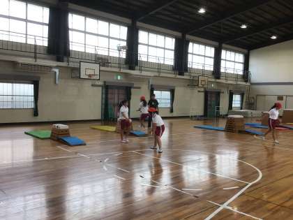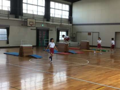 跳び箱 跳び越える前に台の上に足をついて立ってしまった! けがをしないか、冷や冷やドキドキ。