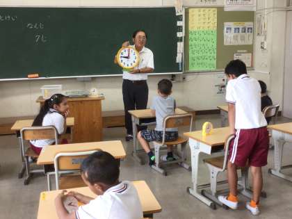 先生「9(きゅう)なんだけど、これは9(く)じって言います。みんなで言いますよ、さんはい」